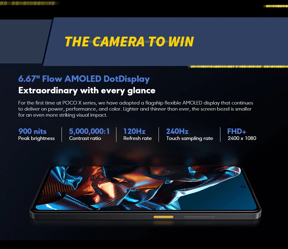 6.67 "Fluxo AMOLED DotDisplayExtraordinário a cada olharPela primeira vez na série POCO X, adotamos uma tela AMOLED flexível emblemática que continua a oferecer potência, desempenho e cor. Mais leve e fina do que nunca, a moldura da tela é menor para um impacto visual ainda mais impressionante.undefined